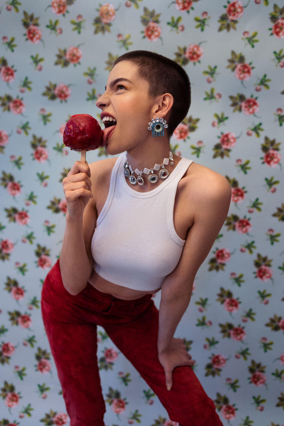 Capturing the surrealist essence of the accessory collection "The 🍎 of my 👁" by Vlerë, inspired by Elsa Schiaparelli and Salvador Dalí, required a photoshoot that balanced artistic boldness with refined aesthetics. The challenge was to translate these surrealist elements into a visually cohesive campaign that highlighted both the intricate designs and the spring-inspired makeup palette.